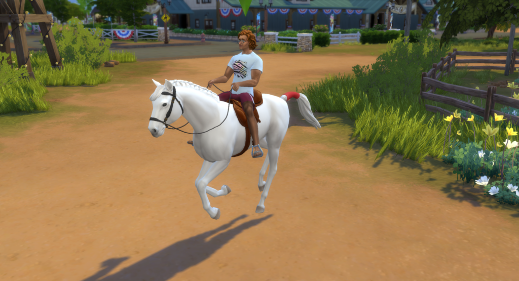 Patch is a normal-ass horse with a normal-ass lifespan, not an immortal familiar like the cat. He exists to complete some of the horse aspiration stuff (and to just play with it tbh since I purchased the horse expansion on sale but haven’t had a chance to really do everything with it).